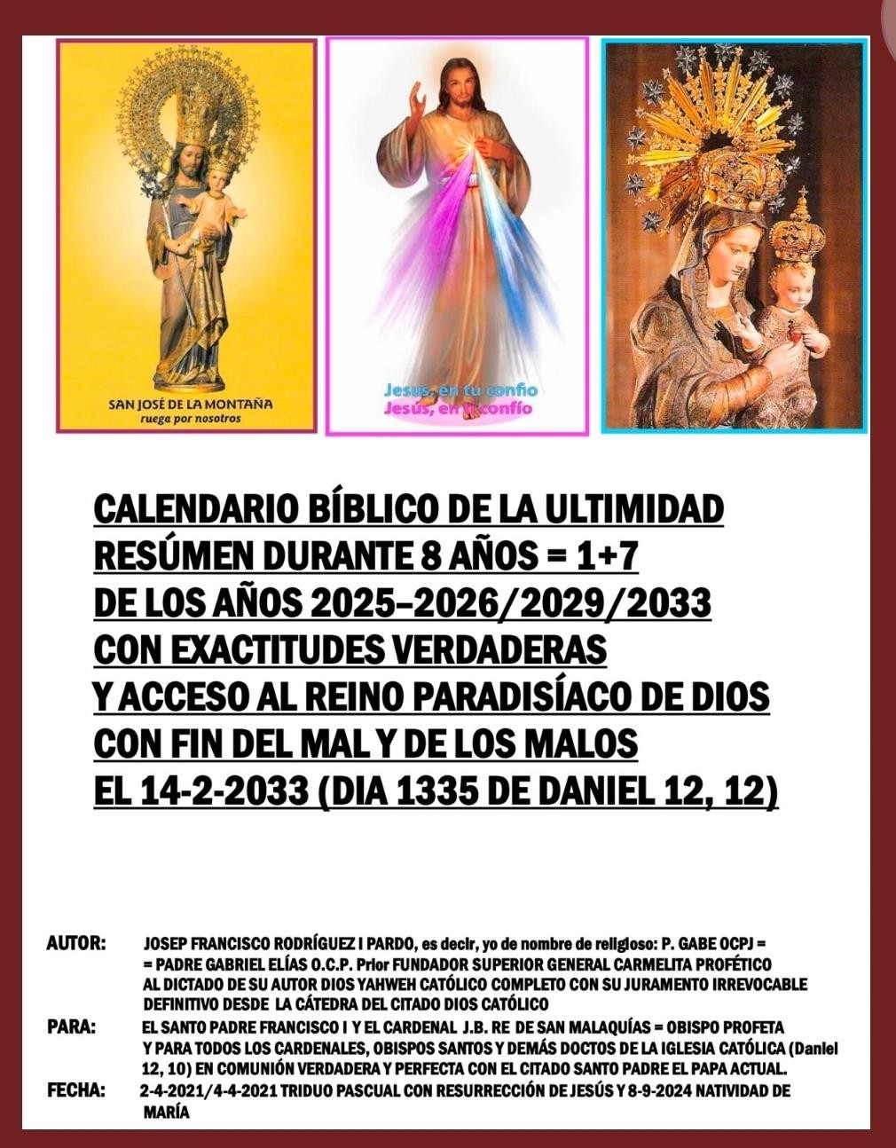 SÓLO SON 8 AÑOS HASTA EL 14-2-2033 12H SEGUN CALENDARIO DE MI WEB CARMELITA PROFETICA.COM» Y ESPAÑOLES EXTREMISTAS GOLPISTAS ASESINOS DERIVADOS Y